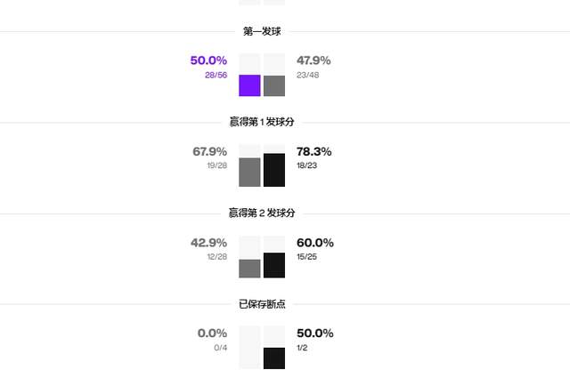 首盘比赛,郑钦文在本场比赛的第一个发球局中就被破发。但那也是她最后一次在发球局上受到严重压力,比分迅速达到了1-1的平局。随后,在第6局中,郑钦文凭借稳健的发挥,成功保发,将比分扩大到4-2。紧接着,她继续保持了出色的状态,在发球胜盘局中再下一城,以6-2的比分率先取得领先。