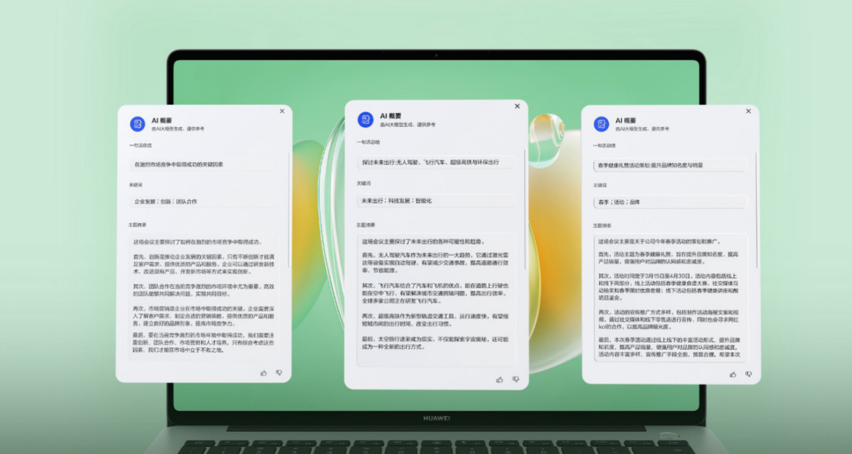 如果说超级终端连接了设备,那么华为MateBook内置的多种AI功能,则是在连接的基础上,为你配备了一个随时待命的智慧助理团,主动赋能于每一个关键场景。
