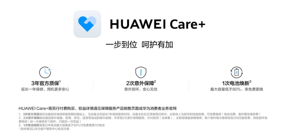 这个双11,选择华为电脑不仅是选择一款产品,更是选择一份安心的服务保障。购机可加购HUAWEI Care+,享意外保障、延长质保等服务。此外,华为还提供购机五年内免费系统焕新、保修期内免费清洁保养等贴心服务,让设备持久如新。