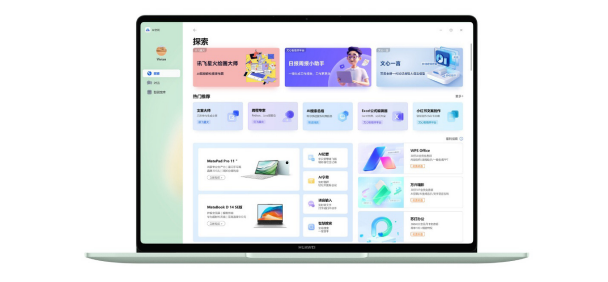 以AI空间为例,它就像是笔记本上的一个“AI应用市场”,聚合了百度文心一言、科大讯飞星火等业界领先的AI大模型,提供了覆盖办公、学习、创作等场景的超过100个AI智能体。无论是需要灵感辅助进行文案创作,还是编程时寻求代码优化建议,亦或是学习时快速查阅资料,都能在这里找到合适的AI伙伴,极大地拓展了笔记本的生产力边界。