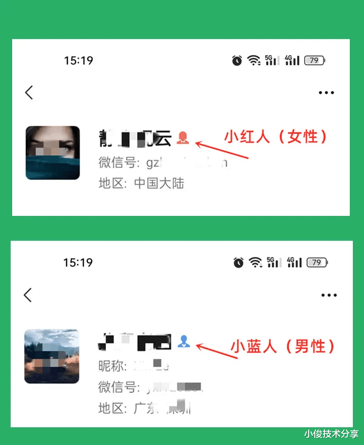 咱们在使用微信的时候,是不是经常会发现在好友微信名称后面,或者在微信聊天页面点击自己微信头像时,会出现一个小人头像,有些的蓝色的,有些是红色的,那么这个就是代表我们的性别标志!