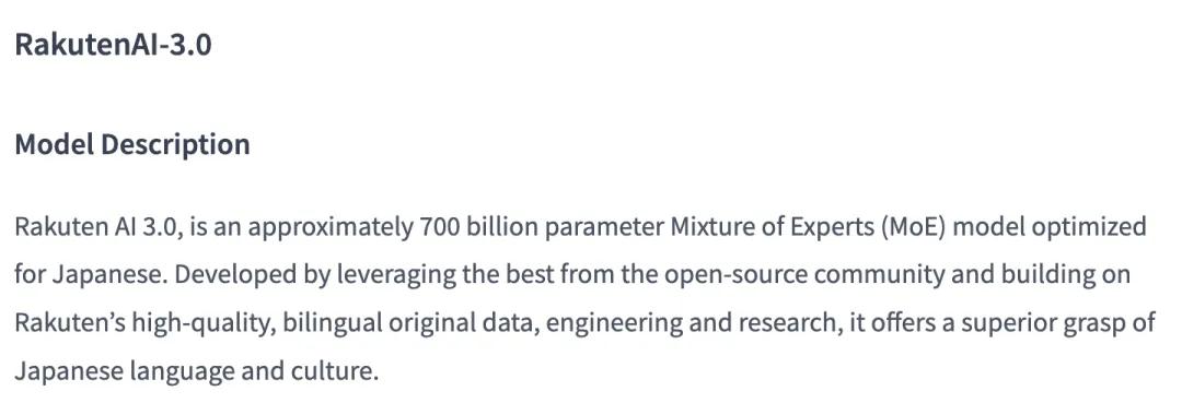 这意味着,Rakuten AI 3.0 并非外界通常理解的“从零打造的全新底座模型”,而更像是在 DeepSeek-V3 基础上,进一步做了日语方向的训练和优化。