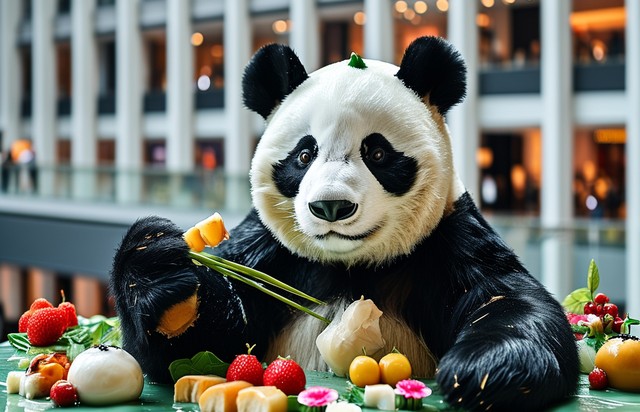 香织女士蹲在熊猫馆玻璃前,把一枚手作樱花饼干贴在冰凉的玻璃上。