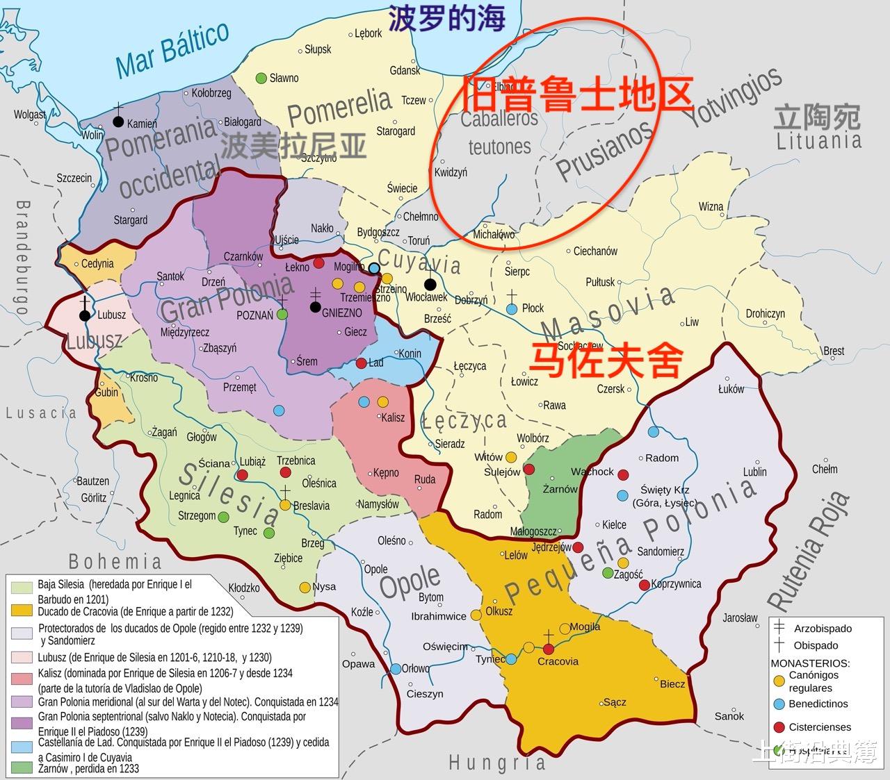 旧普鲁士地区处在波兰东北边儿、立陶宛西边儿还有波罗的海南岸中间位置,是中世纪欧洲版图上管理空缺着地方,作为边疆的缓冲带。普鲁士异教徒一直骚扰波兰边境,马佐夫舍公爵自己没有足够多的兵力去剿灭这些异教徒,这就是他的烦心事。对于骑士团来说,这就是一个新的战场。