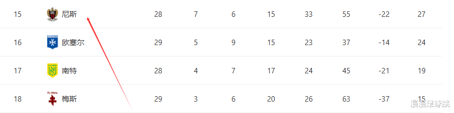 根据法甲的降级规则:倒数第三需要与法乙第三打附加赛,一旦失利,同样降级。而尼斯如今仅有微弱优势,一场直接对话,就可能决定命运。目前他们积27分,排在倒数第四,仅仅比倒数第三的欧塞尔多3分,随时都有可能去打附加赛。换句话说,他们的危险,是“慢性死亡”。
