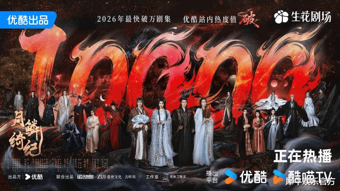 没错,由郭敬明执导并编剧,鞠婧祎、曾舜晞、陈都灵、田嘉瑞等主演的古装爱情奇幻剧《月鳞绮纪》自4月1日在优酷上线后,短短52小时站内热度已破10000、刷新平台年度最快破万纪录,并在播出次日就登顶猫眼全网剧集榜TOP1。