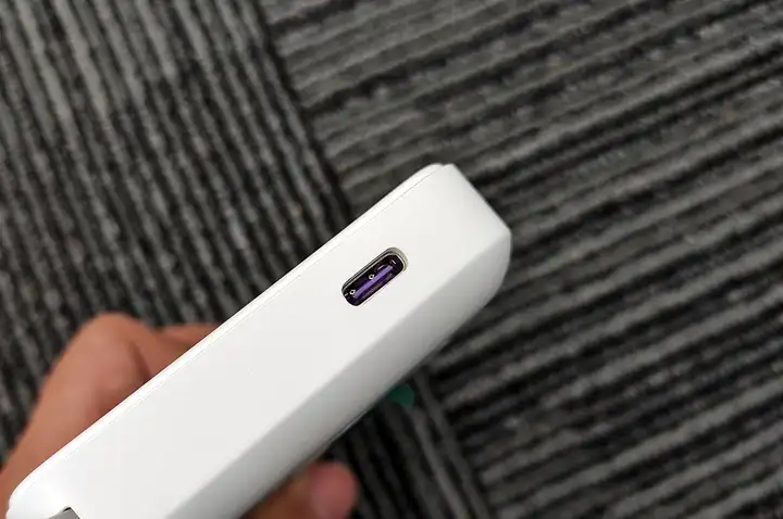 侧面配有Type-C输入接口,支持DC 5V3A和DC 9V2A,充电过程伴随着指示灯闪烁,代表连接正常,如果连接之后无闪烁,可能充电线存在问题,需更换线材。在使用中插拔充电线可接受,但接口如有保护塞会更好。