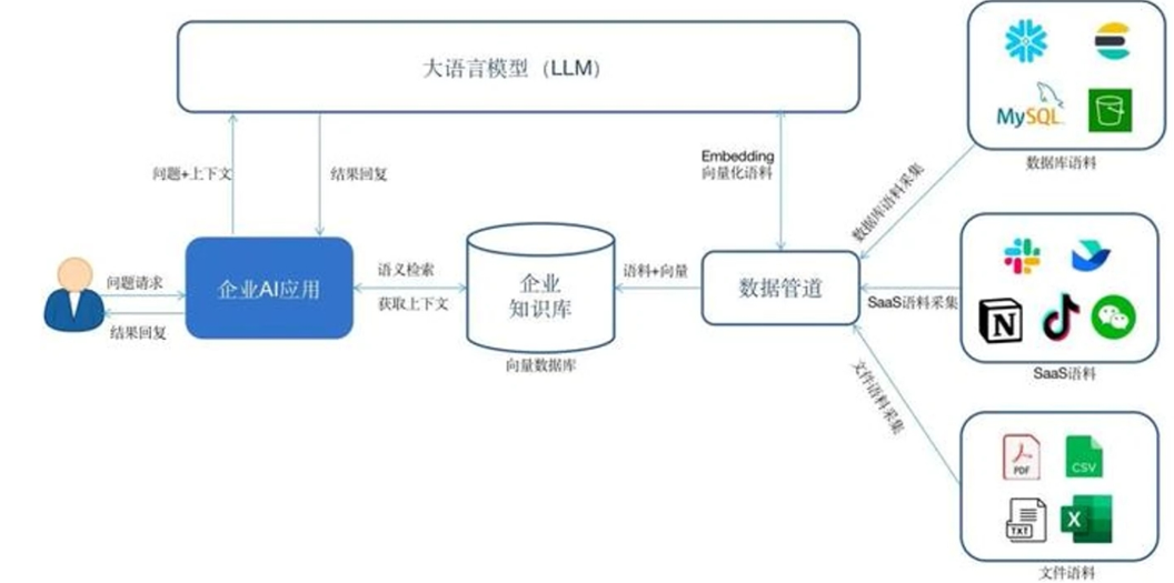 安托搭建了基于RAG(检索增强生成)的企业AI知识库,支持文件语料、SaaS平台数据、数据库数据多源接入,经过向量化处理后存入向量数据库,工程师可以像问人一样用自然语言检索企业知识。