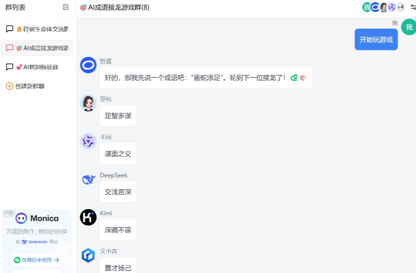 7、Bot group他整合了国内知名的AI大模型,打开这边的全员讨论模式,只需把你的问题发给他,群里的AI大佬就会像员工一样为你出谋划策,而且能根据其他AI的建议进行讨论,兄弟们,快去试试吧。