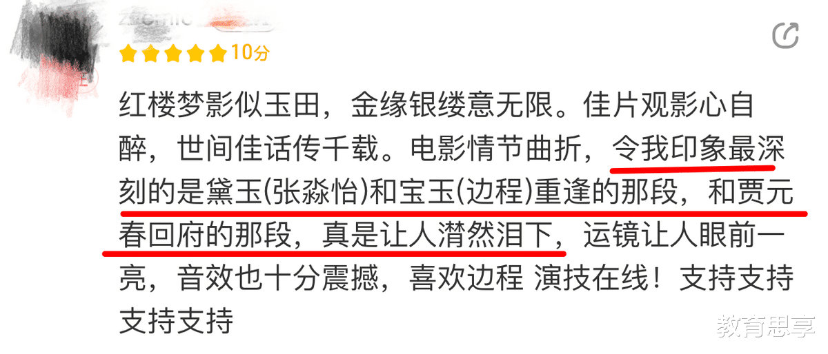 他非常有同理心。在电影中,林黛玉的哭泣的原因他基本能体会黛玉伤心的原因,这不能简单地归结于是“爱情的心意相通”,更多的还是因为宝玉对他人有关怀,有关注。