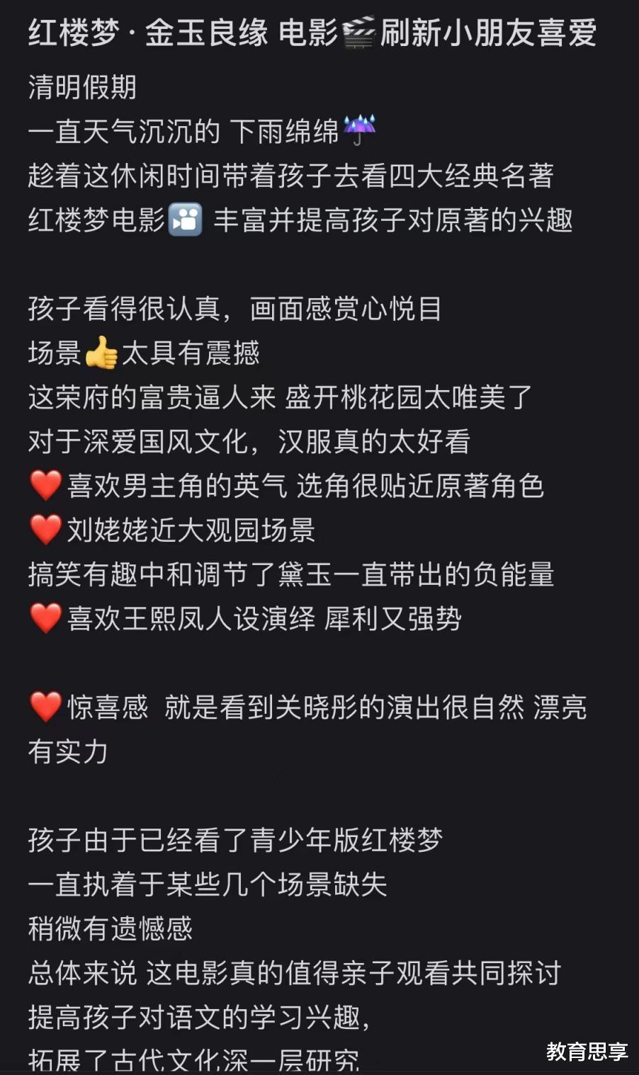 电影特别适合带着孩子全家观看,暑期档一家人边看电影边学习,既能感受到中国古典文化的魅力又能在家族的人物关系中感受教育对人的塑造与改变!如果有人看了这部电影,从而改变自己以往教育孩子的态度,培养出真正快乐而又有才的孩子,那真的是功德无量呢!