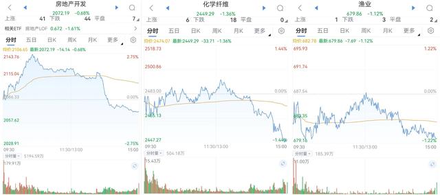房地产,海洋经济。房地产跌幅虽一般,日内走势关键,甚至影响大盘。平开放量大幅拉升,开盘50分钟,涨幅接近3个百分点。随即转头回调震荡,震荡逐渐收窄涨幅。午后开盘50分钟左右,突然直线下砸,迅速翻绿,盘后分析,会议内容没有提及,内心这么脆弱?