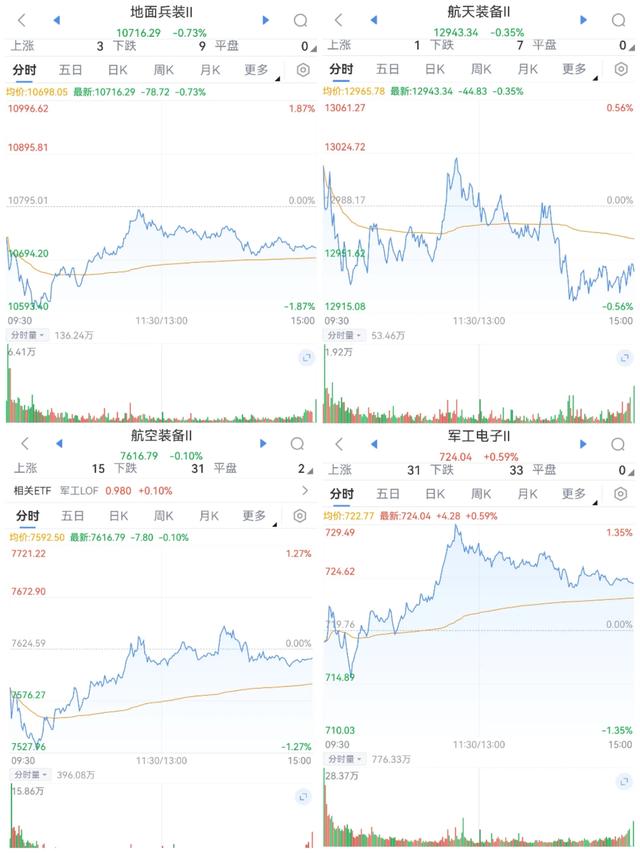 国防军工。平开或低开又向下,跟随信安,转头又拉涨,震荡中向上翻红。上行直至午前,跟随热点,转头震荡向下,午后中段加速不太明显。收盘微涨、微跌或微绿,板块内部分化,走势略输大势。
