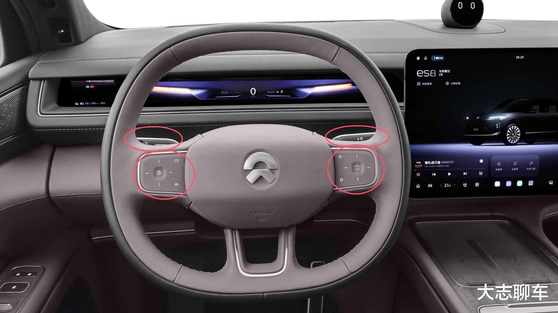 第七点:方向盘按钮覆盖了大部分功能,很多车企为了让自己的车尽可能简单,把很多东西一个劲往屏幕里面塞,完全不考虑什么人机功效的问题,但是,蔚来ES8则把大部分车辆的功能都集成到了方向盘里面,基本可以确保车主在开车的时候,无缝操作车辆的功能,大大降低了车主开车时分散注意力的问题。