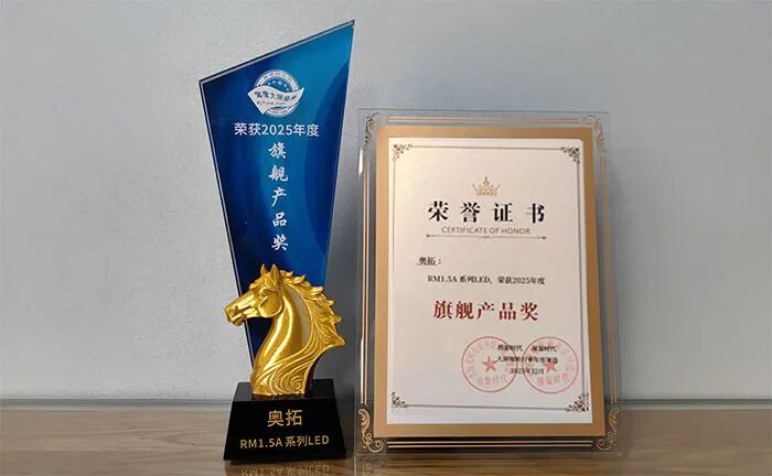 近日,在屏显时代网(pjtime.com)2025年度大屏盛典活动中,奥拓电子凭借其在行业新场景、新品类、新应用上的持续开拓与成长,再次荣获年度优秀品牌大奖及年度旗舰产品奖、优秀案例奖,凸显了其通过创新裂变所展现的行业引领力。