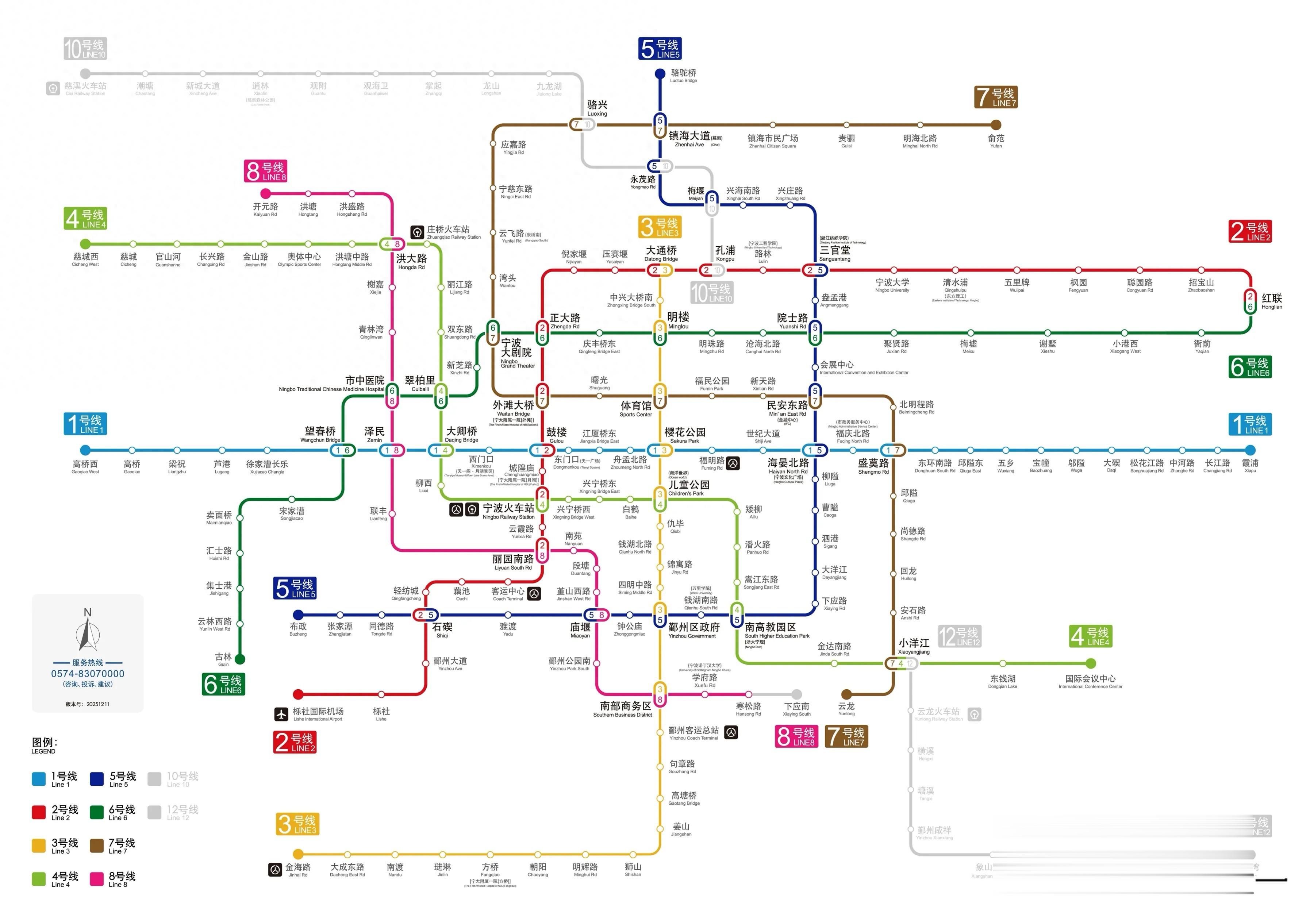 10号线(宁慈线):线路起于孔浦站,止于慈溪火车站,全长64km,其中高架段长39.4km,共设13座车站,其中高架站6座。