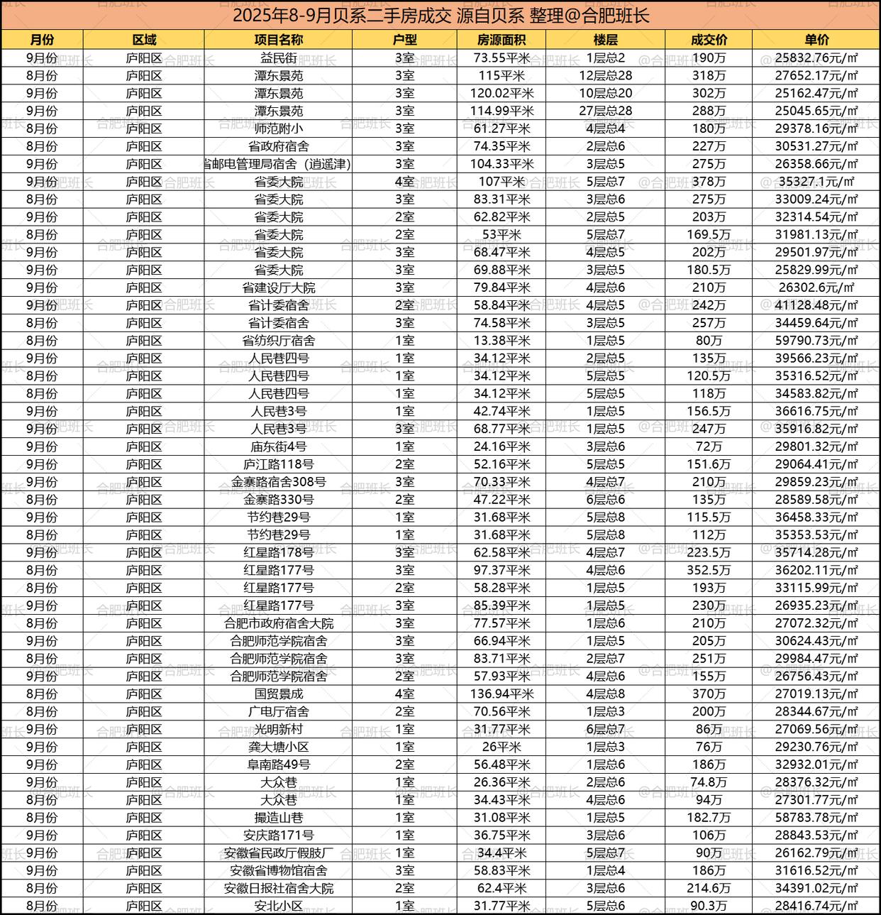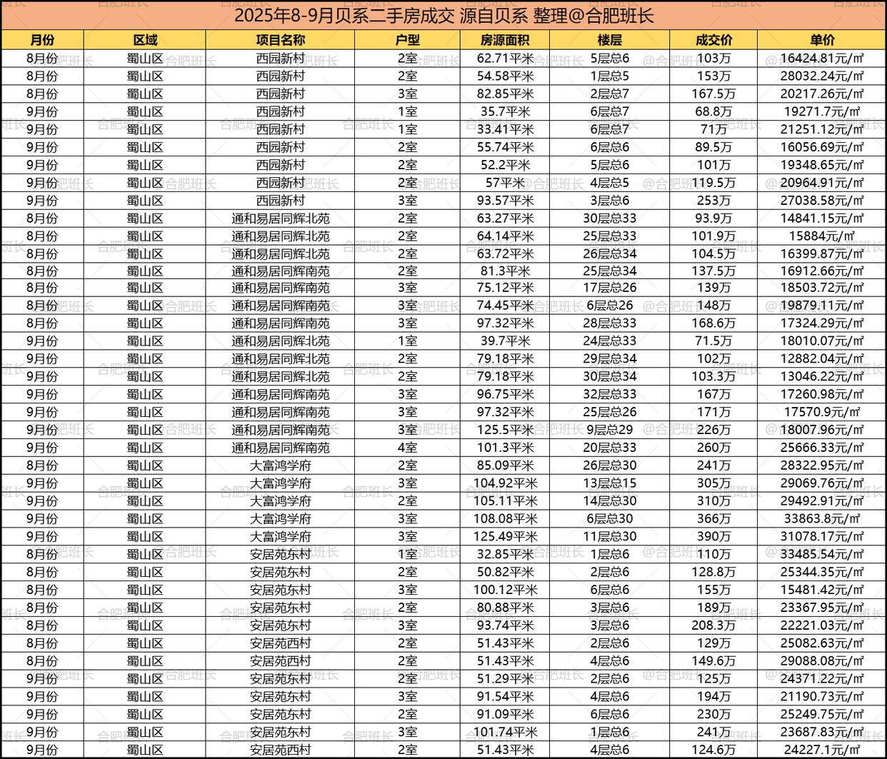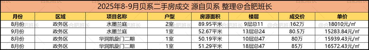 以上就是2025年8到9月部分区域的一些学区房成交情况,庐阳区和蜀山区的学区房在其中价格和销量都排名前列,可见如今学区房市场同样分化明显,对教育重视的家长往头部学校集中。