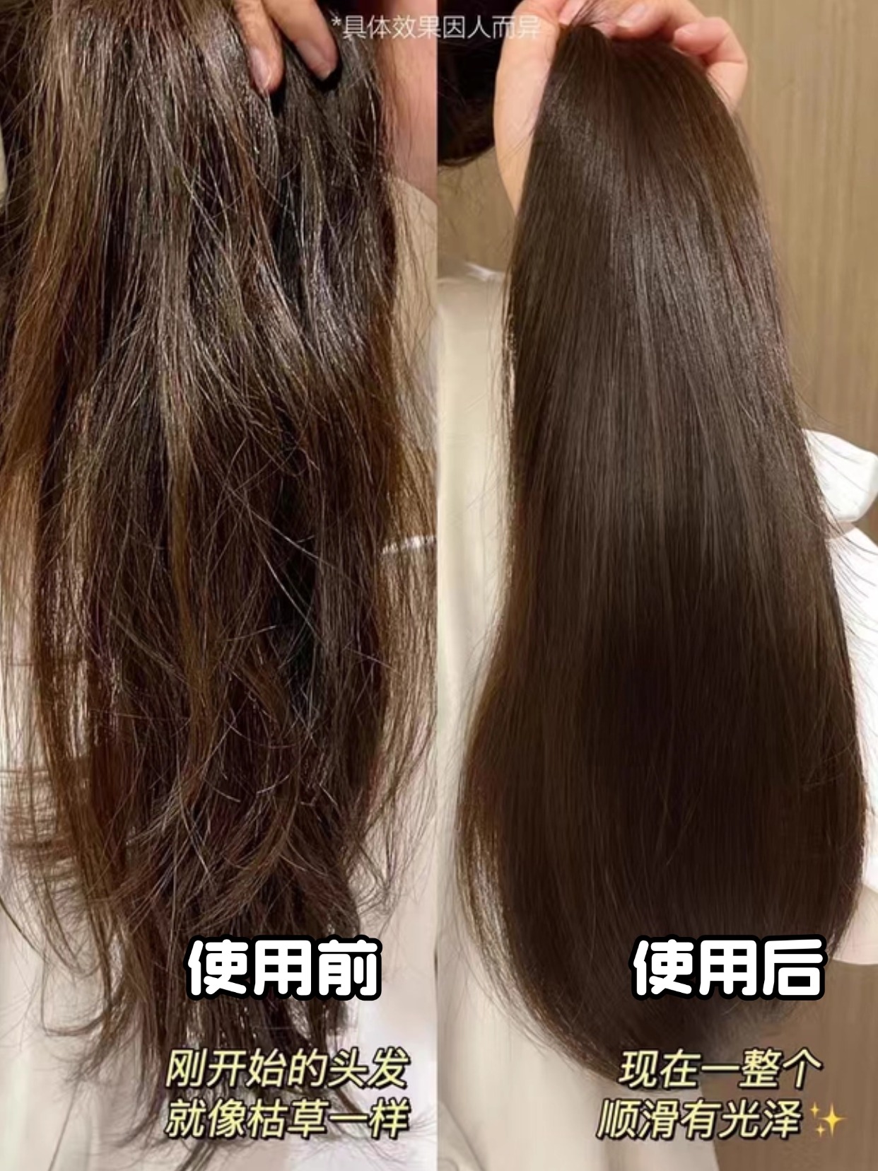 多次检测结果显示使用后柔顺提升 96%,亮泽提升 63%,损伤减少 87%,断发减少 76%,毛躁减少 67%,我原本头发细软还贴头皮,用了之后,头发变得蓬松顺滑,亮泽度也提高了,现在扎头发、散头发都好看,整个人更有气质。护发效果超稳,日常护发的宝藏款!搭载的修护 + 保湿 + 柔顺三效合一技术,层层呵护受损发丝,先填补毛鳞片的受损缝隙,再为发丝重建二硫键,从内部强韧发芯,最后紧密闭合毛鳞片,让护发效果更持久。同时一瓶解决多种头发问题,能修复烫染受损的发丝,改善头发干枯毛躁的状态,拯救细软扁塌的发质,还能改善头发分叉易断的情况,适配各种发质。
