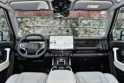 第一次见这辆车,是在4S店的试驾活动上,它就停在展厅门口。一眼看过去,这“方盒子”确实和别的车不一样——个头不小,车身线条直愣愣的,看着很精神,整个车的重心有点高,远看竟有点像缩小版的路虎卫士。我选的是白色,漆面在太阳底下亮堂堂的,不晃眼,车上没什么花里胡哨的装饰,黑色的进气格栅,还有那四叶草形状的LED大灯,看着低调,但凑近了能看到细节做得挺细。车头有一条贯穿的灯带,叫什么“地平线灯带”,亮起来的时候还挺有仪式感,尤其是晚上或者进地下车库,一开车灯,辨识度一下就出来了。解锁车子的时候,日间行车灯还会动,像眨眼睛似的,我朋友坐我车时,好几次都说这个小设计挺讨喜。