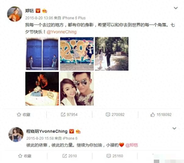 2015年长相帅气的郑恺在时装后遇到了长相甜美的程晓玥,不久后两人陷入了热恋,郑恺在微博高调谈恋爱,两人在微博频繁互动秀恩爱,郑恺在综艺中也大方宣布“以结婚为目的的恋爱”,那时全网络都以为他们会走到一起。