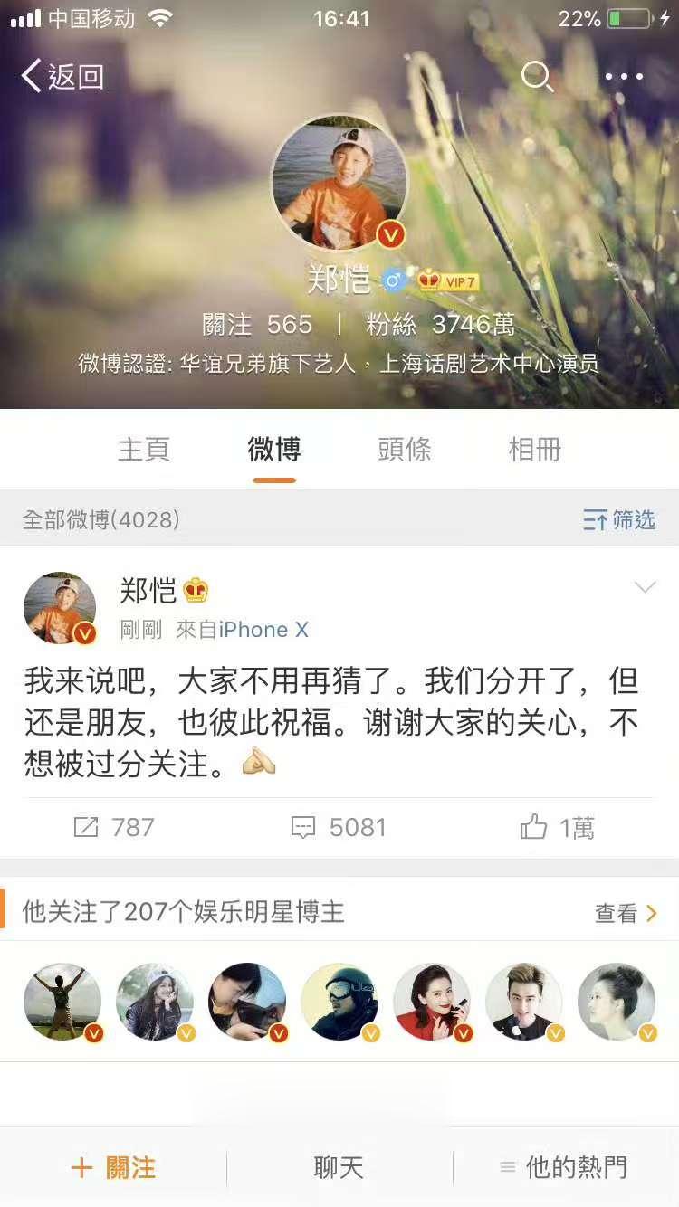 事实难料,2017年11月25号,郑恺在微博说宣布分手,双方做回朋友。