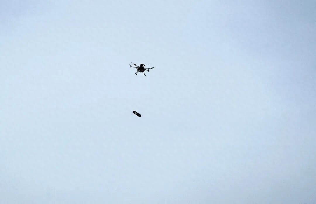 2026年3月23日,在乌克兰无人系统部队的一次训练期间,一架“巴巴亚加”重型轰炸无人机投放弹药。图源:中国新闻周刊