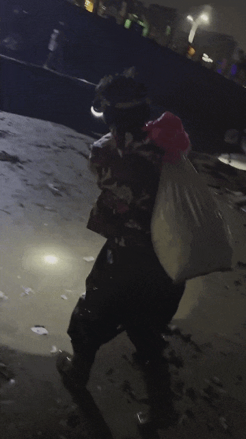很多市民捡海蛎子,都是用麻袋装着背上岸。有些人两个多小时就背了三四麻袋。