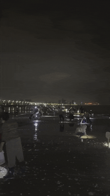 上千人戴着头灯赶海,沙滩上拳头大的海螺、海蛎子、猫眼螺等随手就可以捡到。