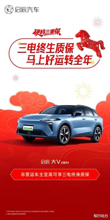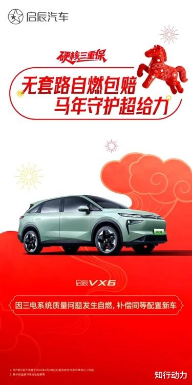 本次政策适用于启辰VX6(不含2026款启辰VX6长续航畅行版、标准续航畅行版)及启辰大V DD-i虎鲸车型,用户需在2026年3月1日至4月30日期间下订并完成交付即可享受。三电终身质保及自燃包赔具体细则,可参阅详细服务单或咨询当地经销商。