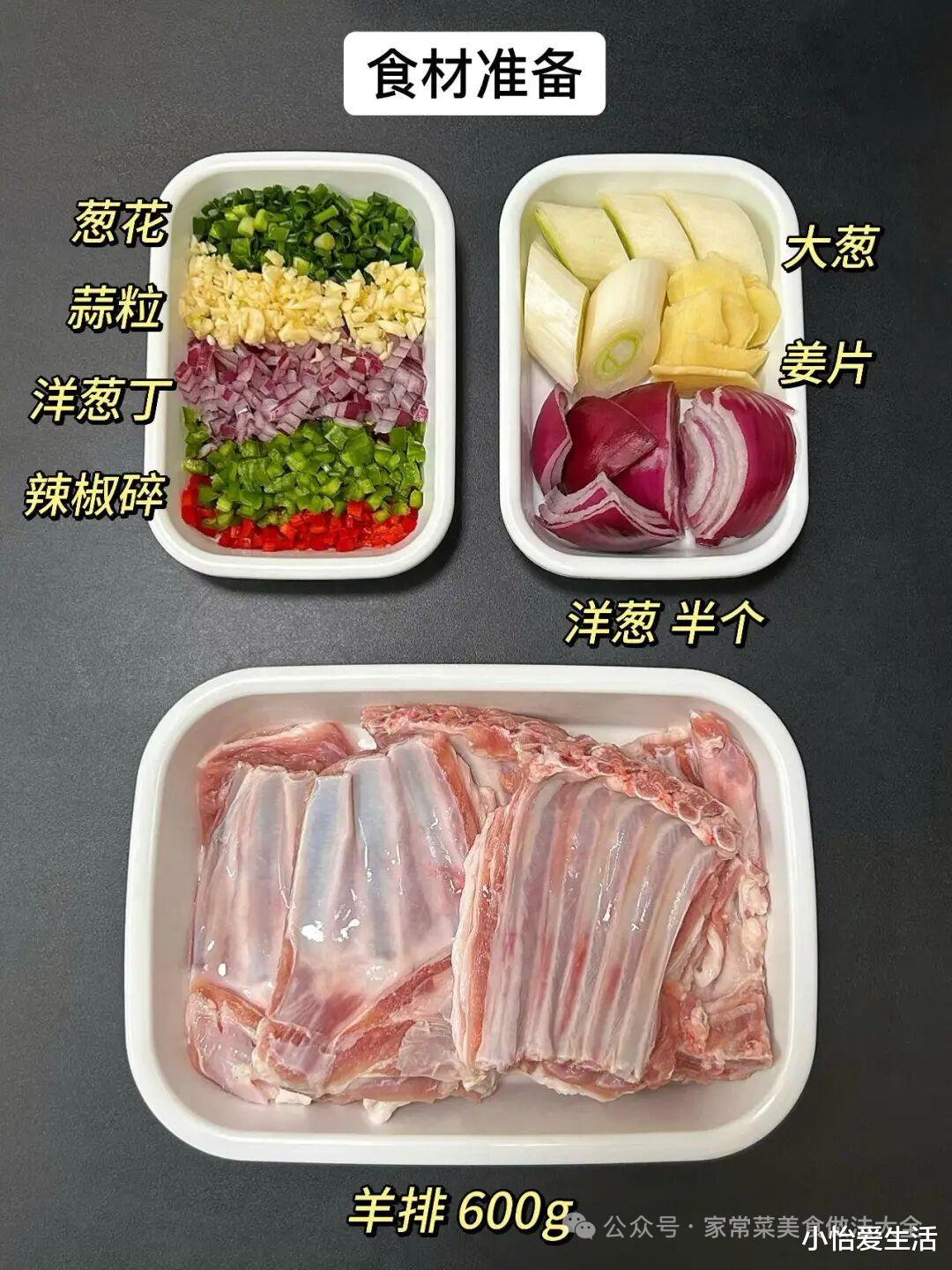1. 羊排切长段,泡冷水1小时去血水。