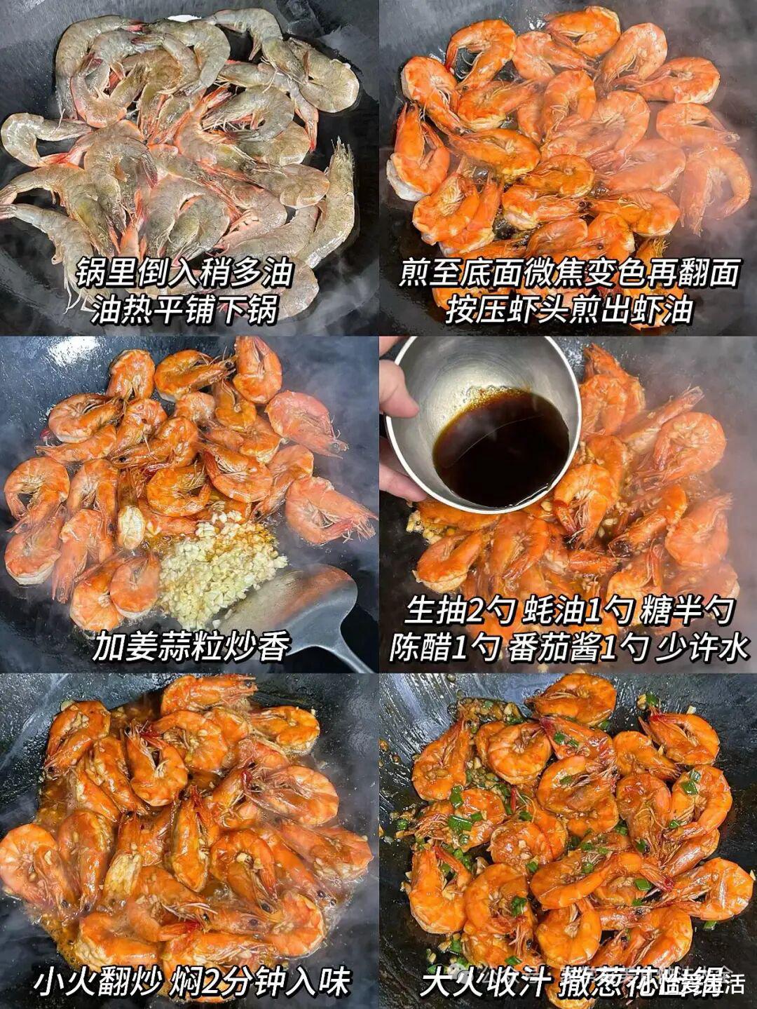 3. 盛出虾,留底油,爆香姜片、葱段、蒜末,可加干辣椒提味。