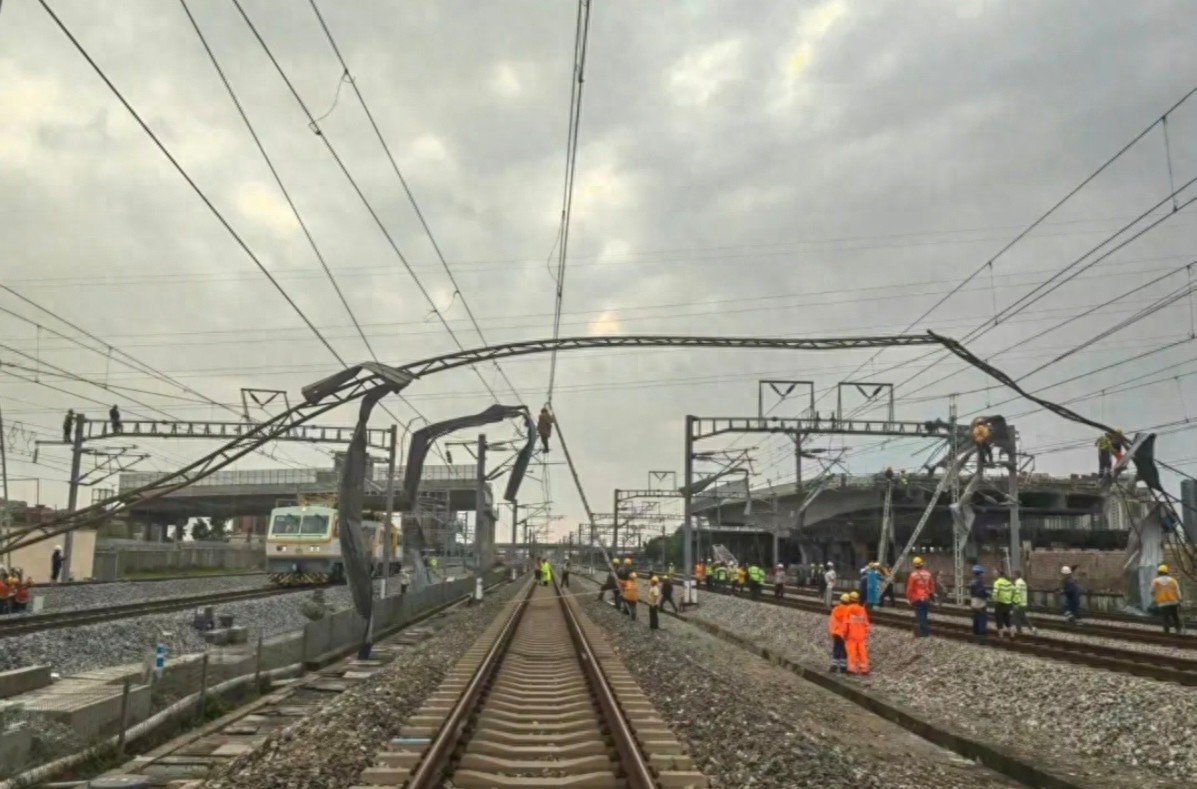 由于广东遭遇强降雨伴随龙卷风极端天气,很多人发现下午竟出现了白天似黑夜的现象,15时许,广铁辖区内的南广铁路、贵广高铁、广湛高铁广州至佛山间相继遭遇因大风刮起的异物挂上接触网的情况,造成供电系统短路跳闸,动车组无法取电,被迫停在正线上。