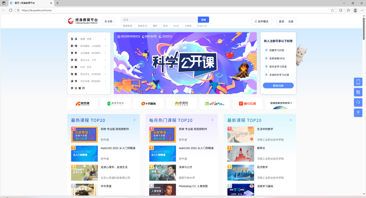 4、国家终身教育平台这是国家打造的免费综合学习平台,课程种类极其齐全,目前已收录 3000 门课程。涵盖健康课、变美课、美食课、居家课、职场基础、人际交往、外语、考公考编、技能课程、学历课等多个领域,在家就能聆听知名教授授课,还有线上几十万人一同学习,学完课程后,还能获得权威证书,是终身学习的优质选择。