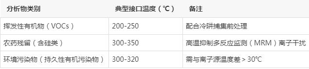 1. 接口温度的“双重防护”热稳定设计:对于非挥发性样品(如石油烃),需将接口温度设定为280-320℃,并开启“反吹模式”(如0.5 min反吹时间),避免样品残留污染离子源。