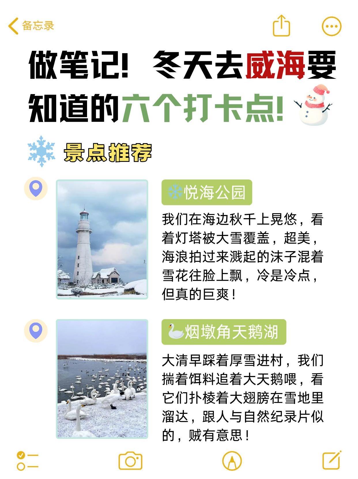 冬天的威海太美啦!白雪覆海、天鹅翩飞,随手一拍都是氛围感大片。避开人潮,在海风与落雪中解锁慢节奏玩法,这份治愈系攻略请收好~