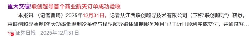 商业航天电池发射:公司是商业航天电磁弹射领域的核心标杆,持股30%资阳商业航天产业运营公司(全球首个超导磁悬浮电磁发射验证平台的运营主体),2025年7月中标资阳商业航天发射技术研究院 “大功率低温制冷系统与模型超导磁体” 项目(1960万元),提供高温超导磁体系统 —— 这是电磁弹射消除摩擦、提升能量转化效率的关键核心部件。12月31日,公司大功率低温制冷系统与模型超导磁体研制服务项目"已顺利完成交付,并通过客户正式验收。