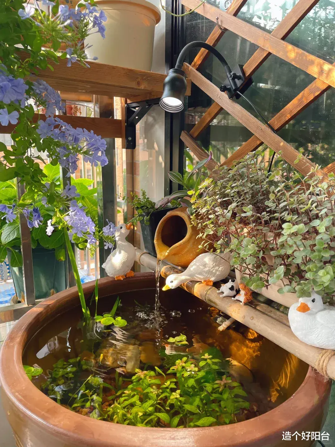 如果阳台空间允许,建议您可以打造一个小水池。