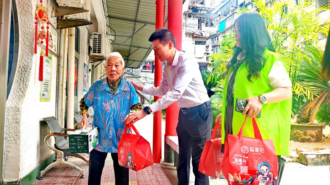 福熹施鱼丸创始人、福州市福延公益慈善服务中心荣誉理事长林瑾辰(林艳艳)慰问高龄老人。