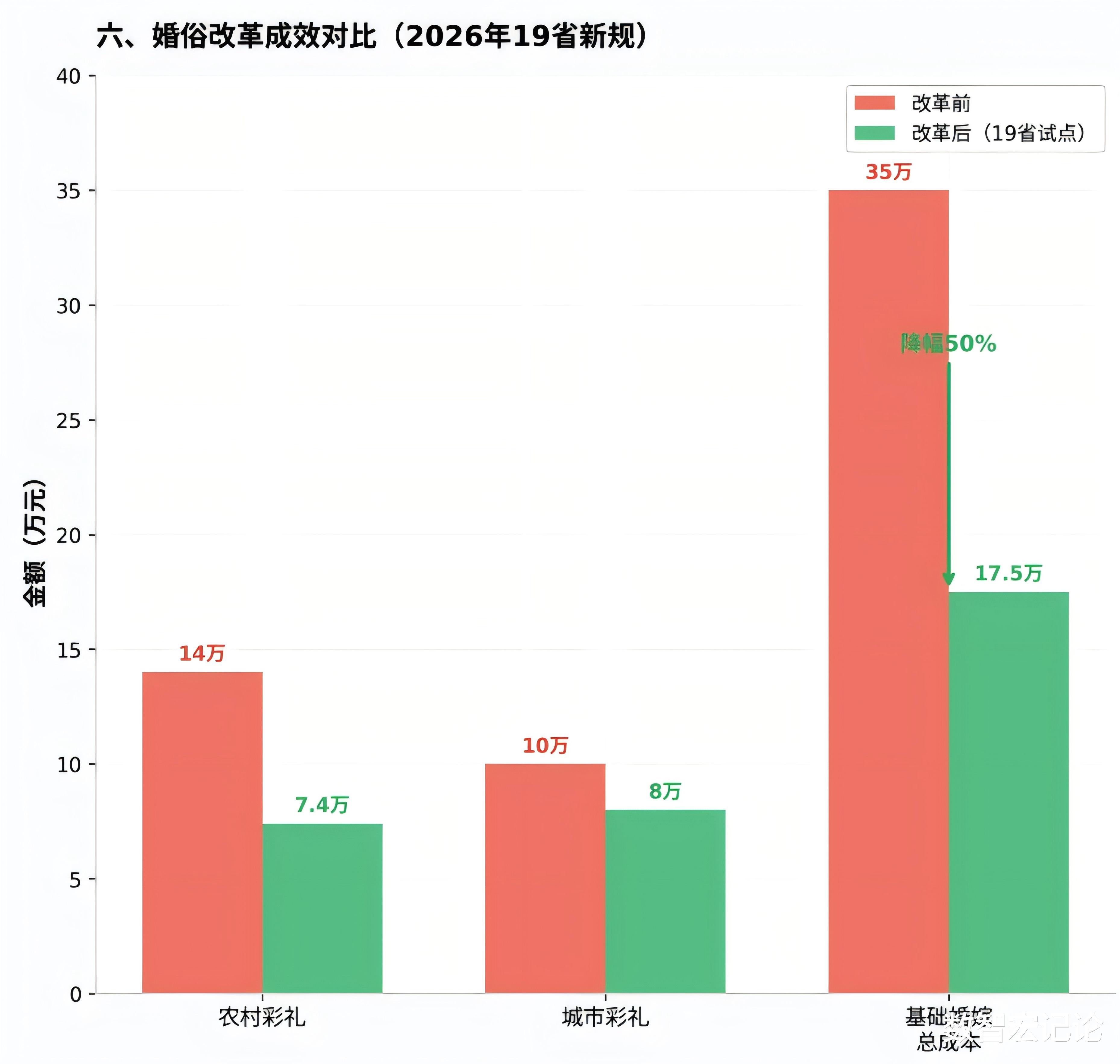 婚俗改革成效:19省试点后基础婚嫁成本下降50%。