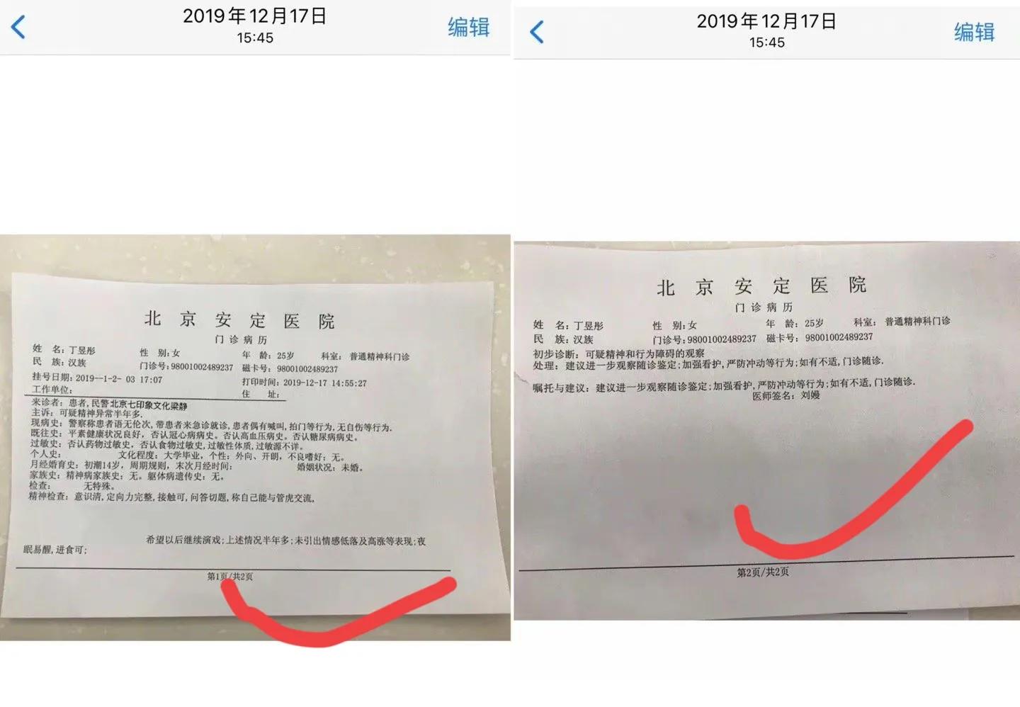 根据丁昱彤所曝光的病历来看,她是在2019年1月2日被梁静带到精神病院,25岁丁昱彤被认为是有精神异常,被建议加强看护!