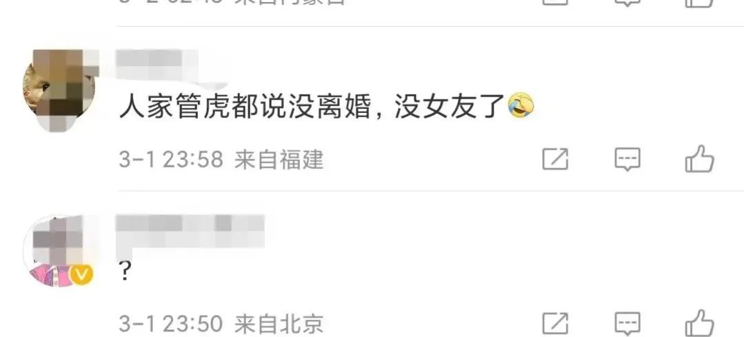 有网友很直接地表示,他不会官宣,人家管虎都说没离婚,没女友了!