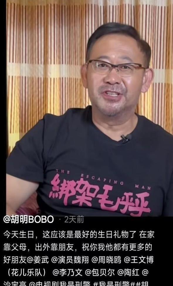 生日当天,众多圈内好友纷纷送上祝福。姜武、魏翔、周晓鸥、王文博、李乃文、包贝尔、陶红、沙宝亮……这些曾经与胡明一起奋斗的演员们,用视频的方式为他庆生。