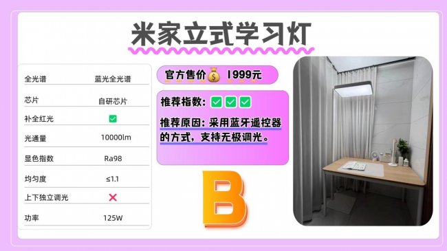 护眼大路灯第十名:米家立式学习灯;采用蓝牙遥控器的方式,支持无极调光。