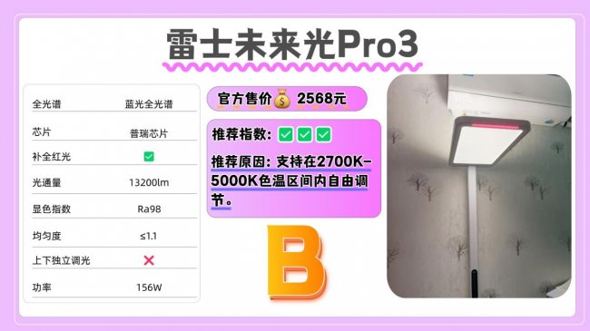 护眼大路灯第八名:雷士未来光Pro3;支持在2700K–5000K色温区间内自由调节。