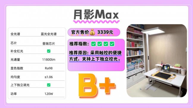 护眼大路灯第四名:月影Max;采用触控的便捷方式,支持上下独立控光。