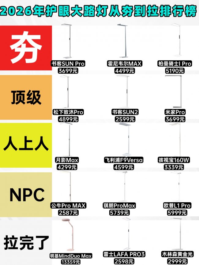 护眼大路灯哪个牌子好有性价比的?我强烈推荐风靡欧美的专业老牌——Suker书客,近年来,不少护眼大路灯品牌为了卖货,不惜牺牲光学品质,以低价、好看的外观和一堆花里胡哨的功能博取眼球,但真正的护眼效果却差得离谱——高蓝光超标、对视网膜色素上皮细胞(RPE)造成损伤,长期使用甚至会加速视力衰退。