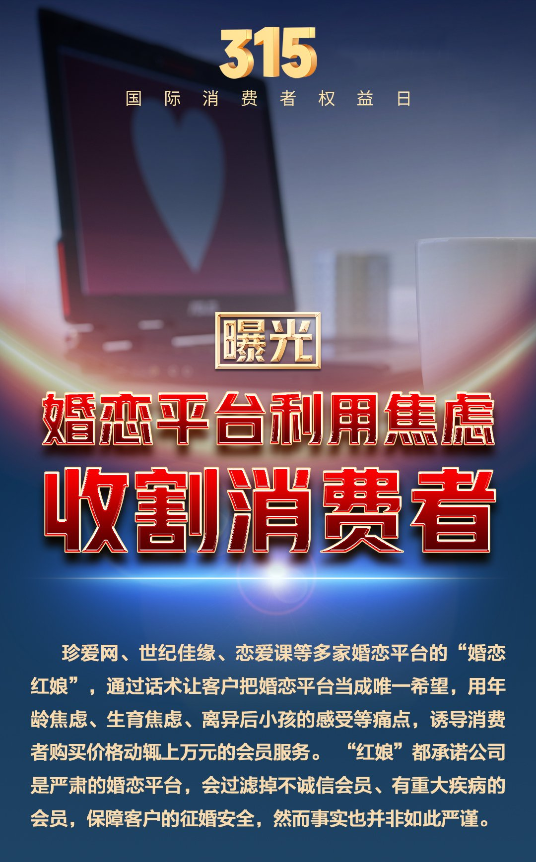 近年来,世纪佳缘深陷负面舆情的泥沼。2024 年央视 3・15 晚会,更是将世纪佳缘的丑陋行径公之于众。晚会中曝光,世纪佳缘的培训讲师公然教导 “红娘” 们抛出 “诱饵”,也就是虚构出符合客户心意的 “虚拟人”,以此来筛选消费者的经济状况。对于经济实力强的消费者,便进一步诱导其购买上万元的高价会员服务;而对于经济条件欠佳的,则直接放弃。这种将消费者区别对待、完全以利益为导向的操作,严重违背了婚介服务的初衷 。