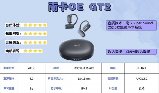在当前开放式耳机市场中,南卡是为数不多能够在舒适佩戴与高保真音质之间实现完美平衡的品牌。自创立15年以来,南卡始终专注于开放式声学技术的研发,致力于革新听音体验,精耕每一个细节,打造真正属于中国品牌的旗舰耳机。同时OE GT2还整合了全能Ai智慧系统,具备翻译、语音助手、内容创作等数十项功能,让耳机从单一的听音工具升级为学习、办公、娱乐的全能助手,并已斩获美国、欧盟等国际权威认证,真正奠定了开放式耳机旗舰标杆的地位。