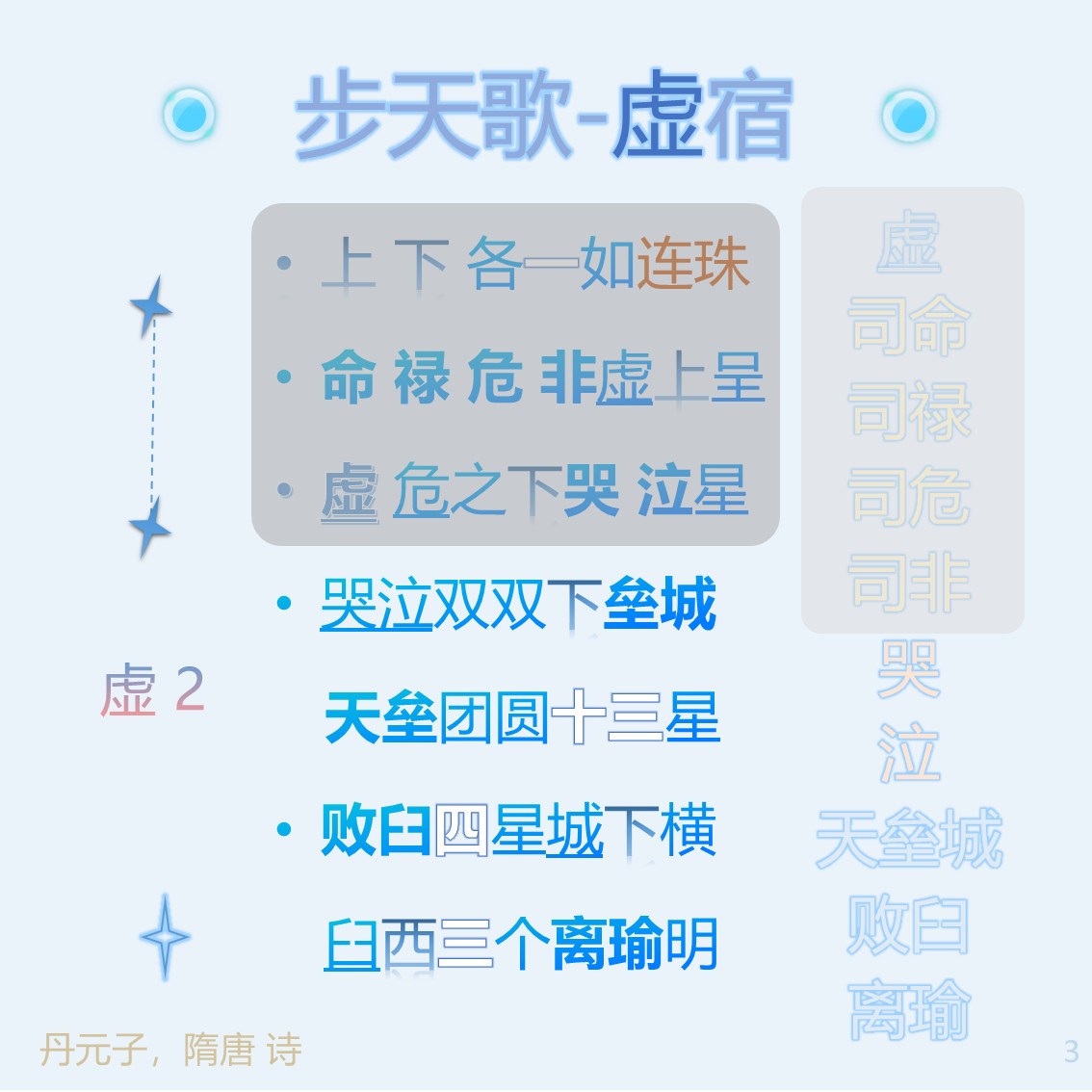 步天歌-虚宿上 下 各一如连珠命 禄 危 非虚上呈虚危之下哭 泣星哭泣双双下垒城天垒团圆十三星败臼四星城下横臼西三个离瑜