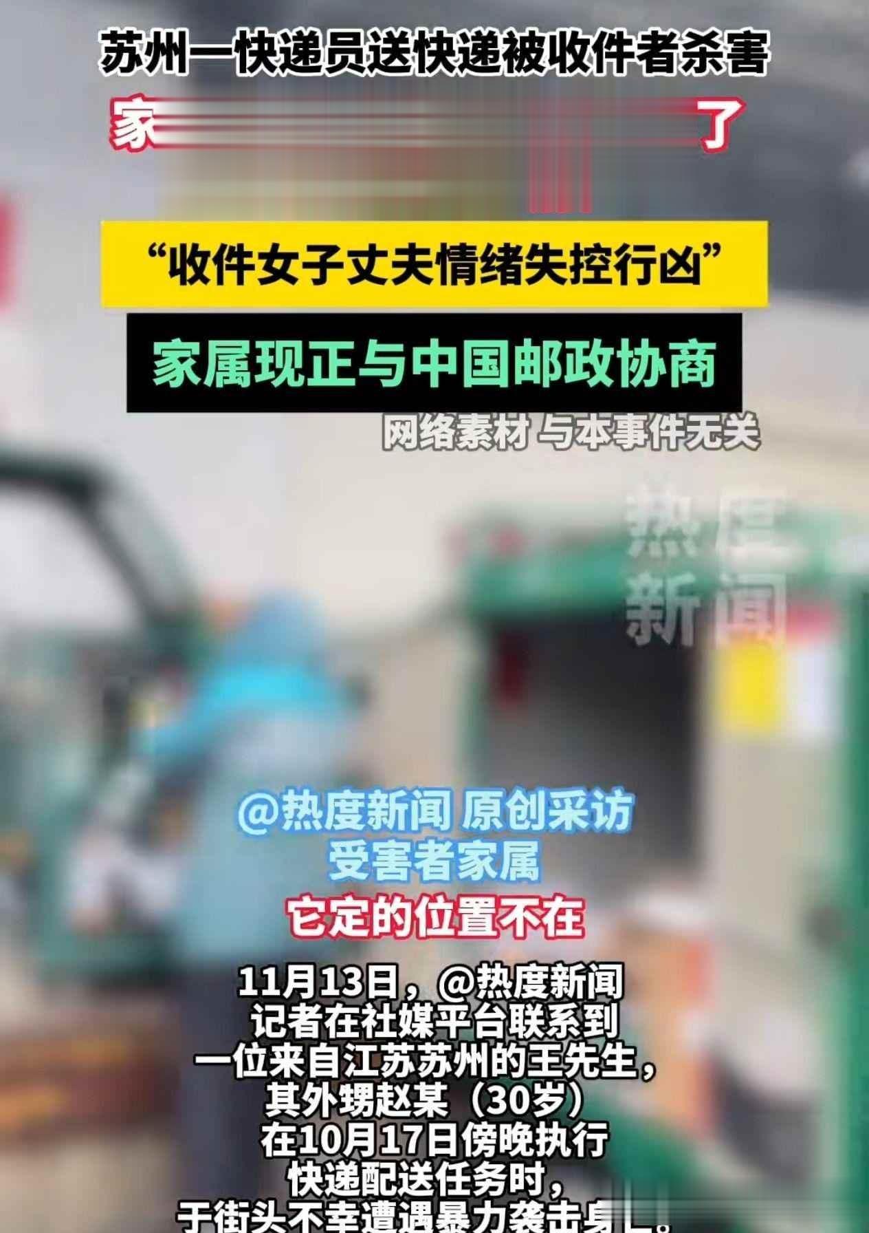 邮政方面没有说明如何赔偿,警方也没有公布监控录像,媒体只关注"快递员惨死"这个标题,没有人去查吴女士家里有没有家暴的记录,也没人问她平时是不是喜欢投诉,大家都只看表面的事情,没人去想背后是谁把这个人逼到走投无路的地步。